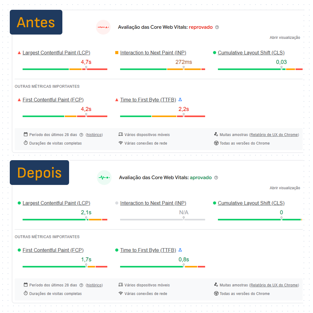 - Evolução no posicionamento orgânico (SEO) nos meses seguintes